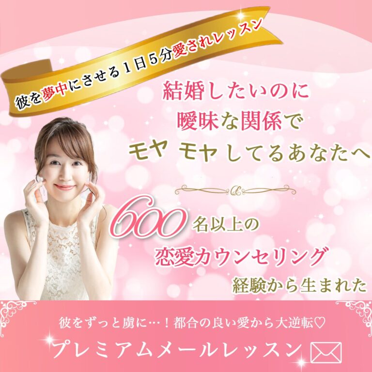 【彼を夢中にさせる 1日5分愛されレッスン】 目的 恋愛カウンセリングのレッスンのメールによる導線。 ターゲット 恋愛に悩む20代~40代の女性。 デザイン概要 恋愛カウンセリングのバナーということで、イメージカラーはピンクで、実績をしっかりアピールし、カウンセラーの画像も使用することで信頼感をだせるよう制作しました。