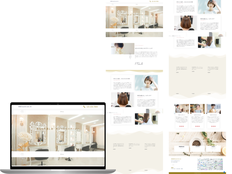 TOPページの画像に綺麗で清潔感のある美容室の店内の画像を使用し、「ここに行ってみたい!」という気持ちになるよう制作しました。内容やカラーはシンプルで、飾らず安心して任せられる美容室であることをアピールしています